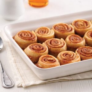 C’est une pâte à croissant roulée avec du beurre, saupoudrée de sucre, de cannelle et de sirop d’érable. C’est un pur bonheur gustatif !