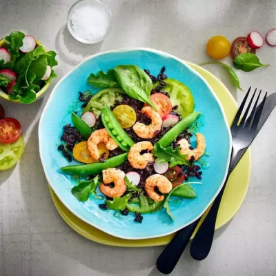Commencer la présentation de la salade en disposant, dans une assiette creuse, la laitue.