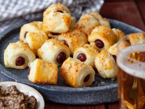 Si vous cherchez une recette de petits fours healthy, essayez ces feuilletés – de la chair à saucisse enveloppée dans une pâte à pain au yaourt grec maison.