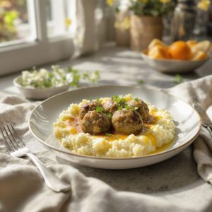 Des boulettes de viande tendres avec une sauce crémeuse et une purée de chou-fleur onctueuse se marient parfaitement dans cette version des boulettes suédoises.